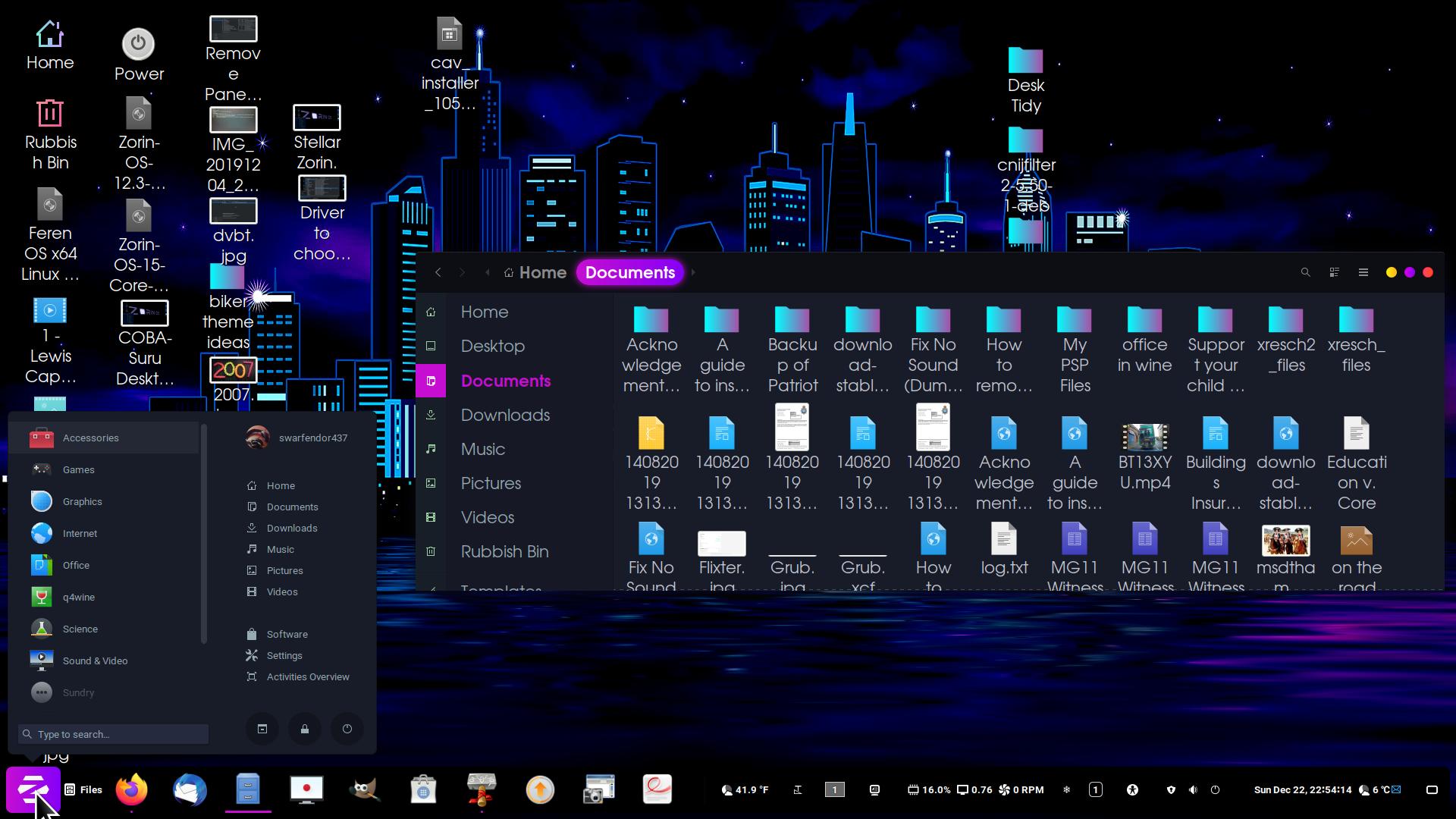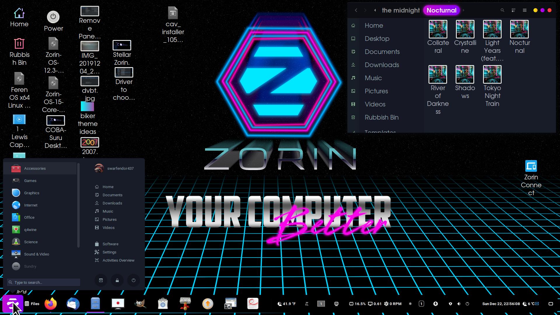 My current theme is COBA with COBA-Suru icon set - wallpaper designed by yours truly using press kit of white (blue seems to show up as grey in downloaded .zip!), so filled in the Zorin OS logo with blue, added a Supernova lens flare in gimp and added to black wallpaper. (A poor alternative to Aravisian's Azenis theme I know!). Called the wallpaper "Stellar Zorin":