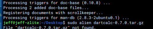 So I capt a darts team in a league. To keep score I use a calc spreadsheet I altered from someone's excel program and hook up my laptop to a tv.. Works OK, but doesn't look that good. Aesthetically speaking. So I searched for free software and came across dartcalc-0.7.0.tar.gz (sourceforge). Says it works on linux. I downloaded and extracted. There is no configure folder for me to run ./configure. I'm not familiar with tar, and did a google search to follow to try to install. Anyone ever run into that issue? If so, is there a work-around? The program itself looks good, and should be much easier for everyone to help keep score during our matches. Any help would be appreciated.