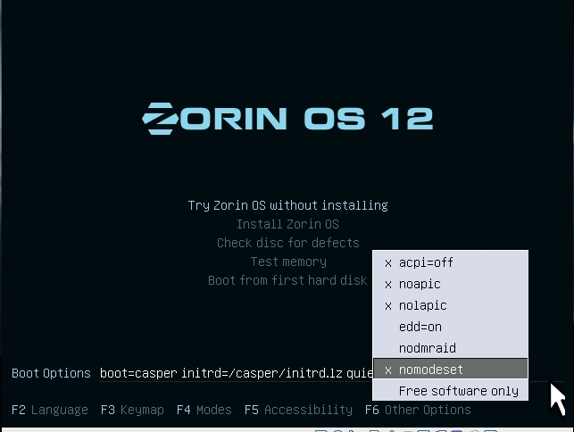 I press e, for settings, and try one of two commands of the 'nomodeset' command in the ho-es of trying to boot the iso: