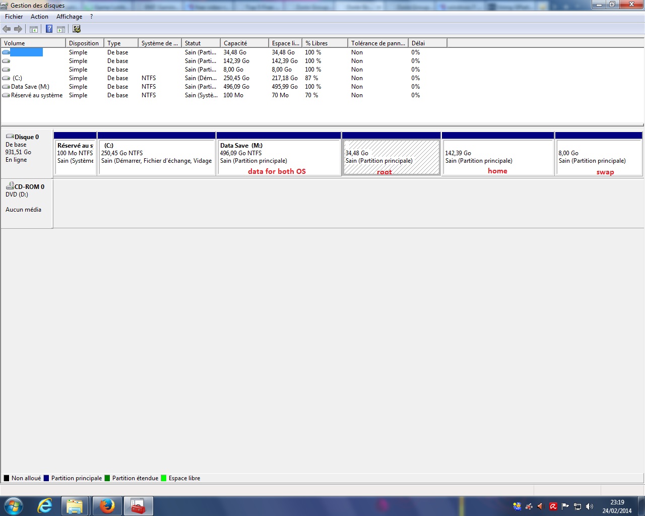 Now I installed windows 7 64 bits normaly (one boot partition and 931 GB the other). I'll use it to play some games and record videos then i'd like to send them to Zorin OS openshot editor (or maybe i'll do it in win7 but I mean i'd like to be able to use the files under linux or windows)