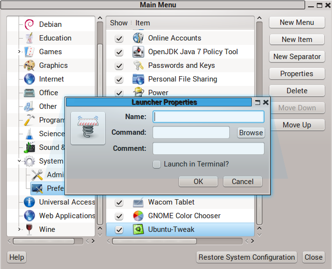 sudo apt-get install alacarte