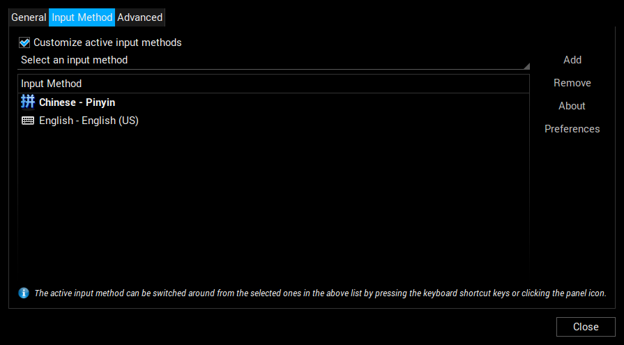 I've been trying to enable Chinese input on Zorin. The input method is ibus, I have tried to go into Language and Support to install Chinese and I have also selected Chinese under Text Entry Settings. Furthermore, I've also installed ibus-pinyin and ibus-sunpinyin. It works if I remove English after running ibus-setup, which allows me to add Chinese pinyin under my menu. However, what's in the indicator is certainly not reflective of what I have under ibus-setup.