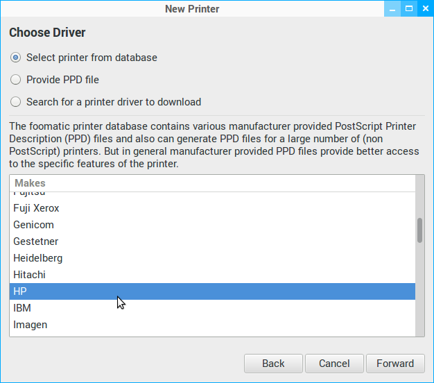 Thank You Swarf. I actually had found an old tutorial and tried to install that, with no success. I didn't realize it was in SPM. Well, I installed it, and it finally recognized my printer. Here's how it went: As before, I got the screen about duplex installers being available. I checked it, but no way forward again, so I went back, and then forward (or next) was available. I was able to complete the process, and now have all the HP goodies on my computer. However, it wouldn't print a test page, or a document. It reported that the job was complete, but the printer would not start. (It is on and does work). I'm going to fool around with the HP controls and see if I can get it to work.