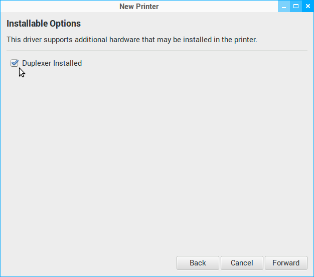 Only check mark the duplex item if you have one fitted. Does this help? Don't forget to click on 'Apply' - just like that other OS!