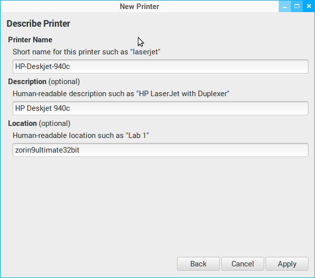 I just did a new install of Z9, and it can't find my printer, a HP 940C deskjet. This is strange, because in my other installations of Zorin it has had no problem finding it, and installing drivers. The printer works fine with Windows. Thank you.