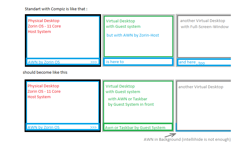 so, when the taskbar fade in (intellihide), it covers the the taskbar from the guest-system, or is confusingly with the guest-system when it turn up thereunder.