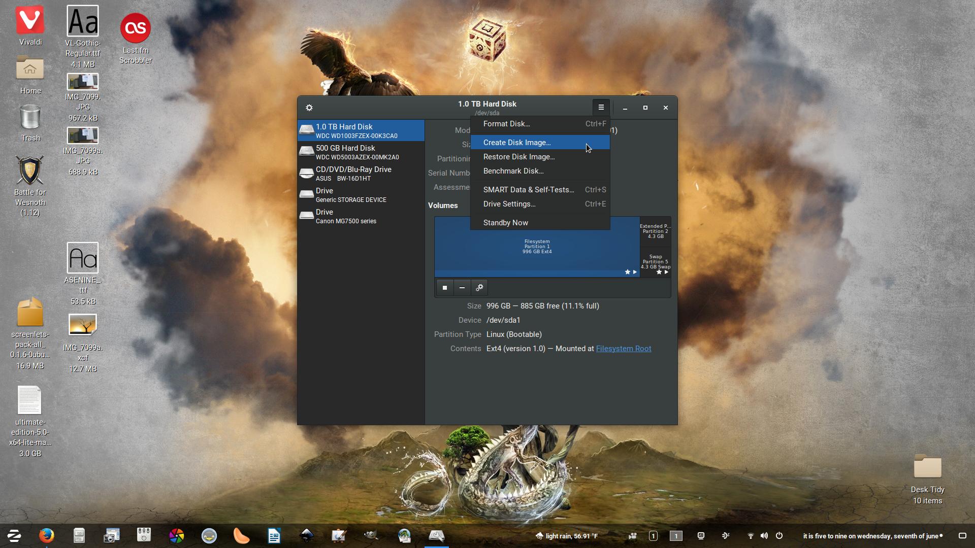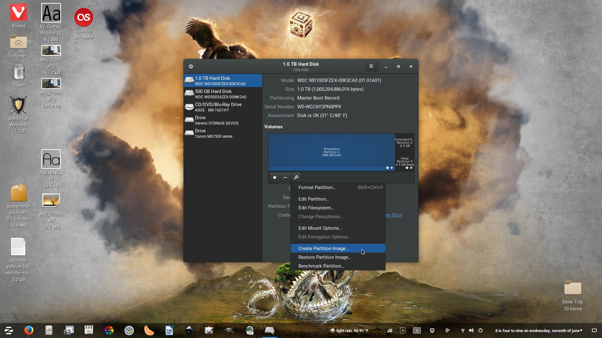 How the "created Partition image" - about 500 Gb - would interact with the Seagate 985 Gb partition - if dropped into it - is above my pay grade. Would it just be Nested within the larger partition, allowing "Headroom" for the "backups" backup data within the 985 Gb partition. If so, I guess there could be ~ 450 Gb for "Backups data.