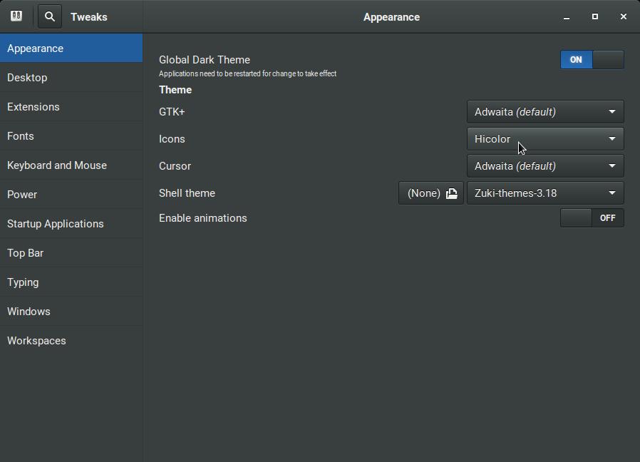 Gnome Tweak Tool shows my desktop icons that I like to be “adwaita”.