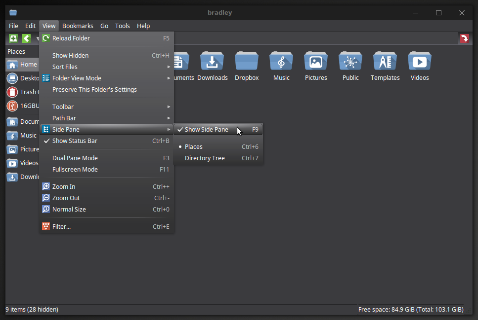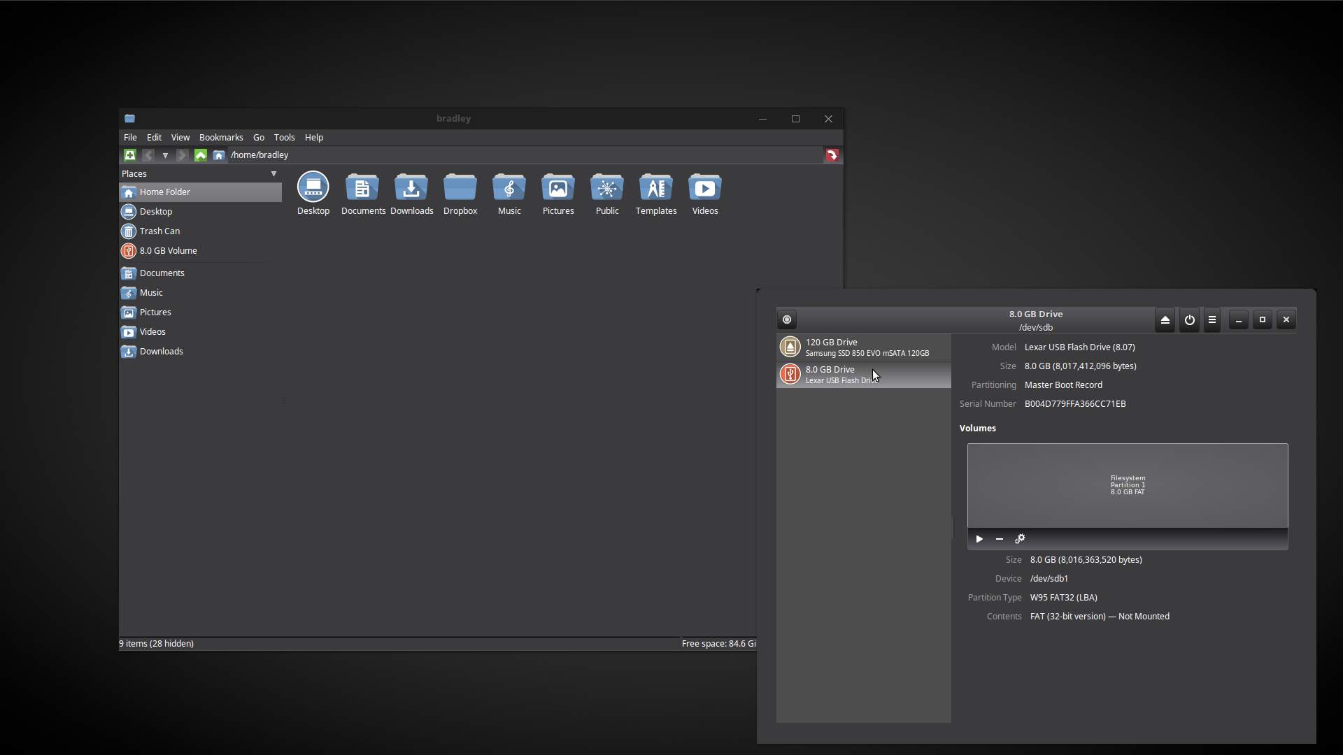 Another thing to note is a Windows PC (File Manager = Explorer?) will always show your drives, such as my DVD drive, even without a disk in it (D, E, F, Drive??) whereas Linux does not until it is 'mounted'.