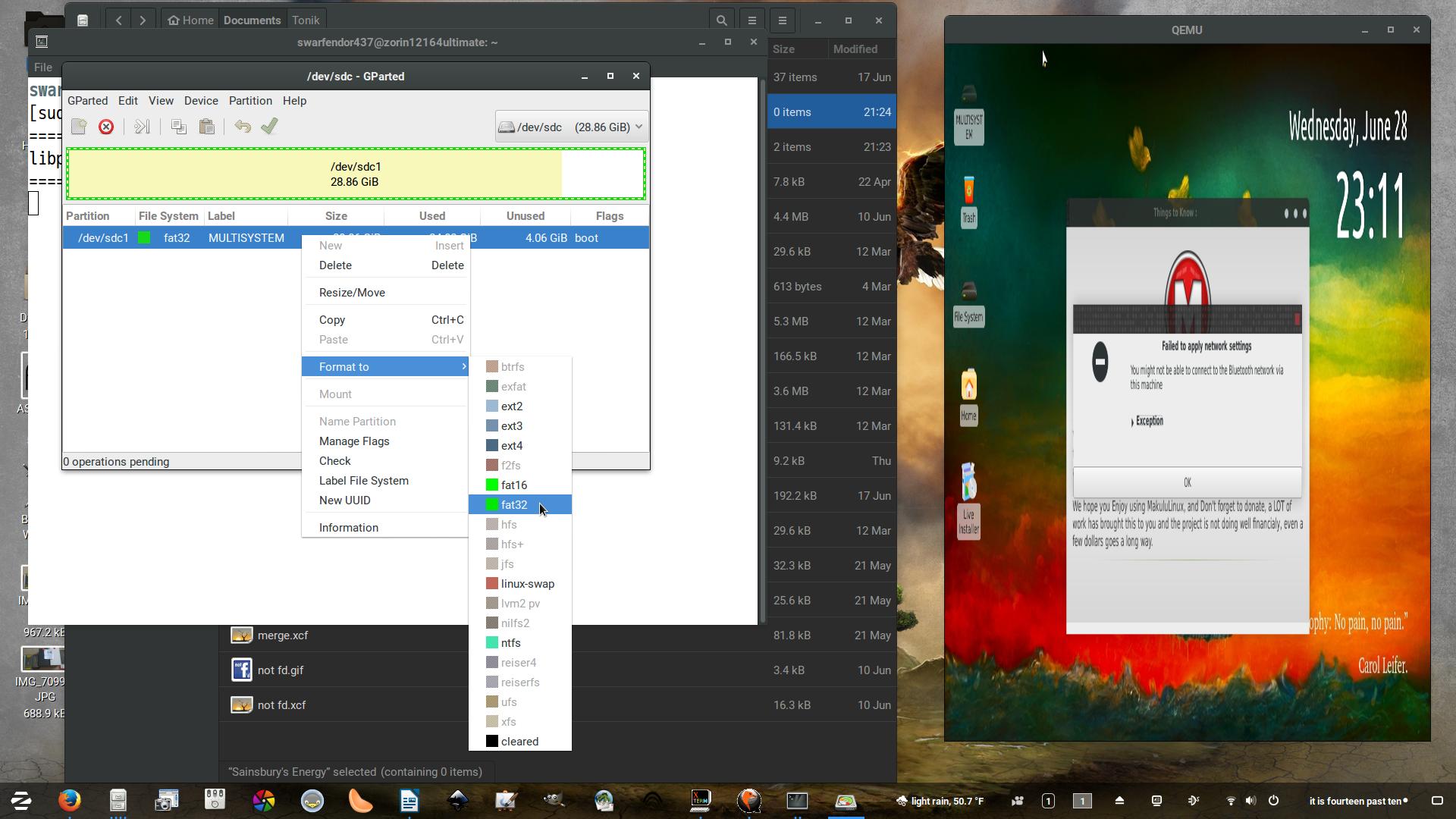 I am using Linux Mint Mate 18.1 (16.04) 64 bit but I don't think that should change much for our purpose here. Not sure if a 32 bit machine and or OS would make any difference to "Seeing" a drive of larger capacity such your 34GB? Someone else may like to clarify if this is so!