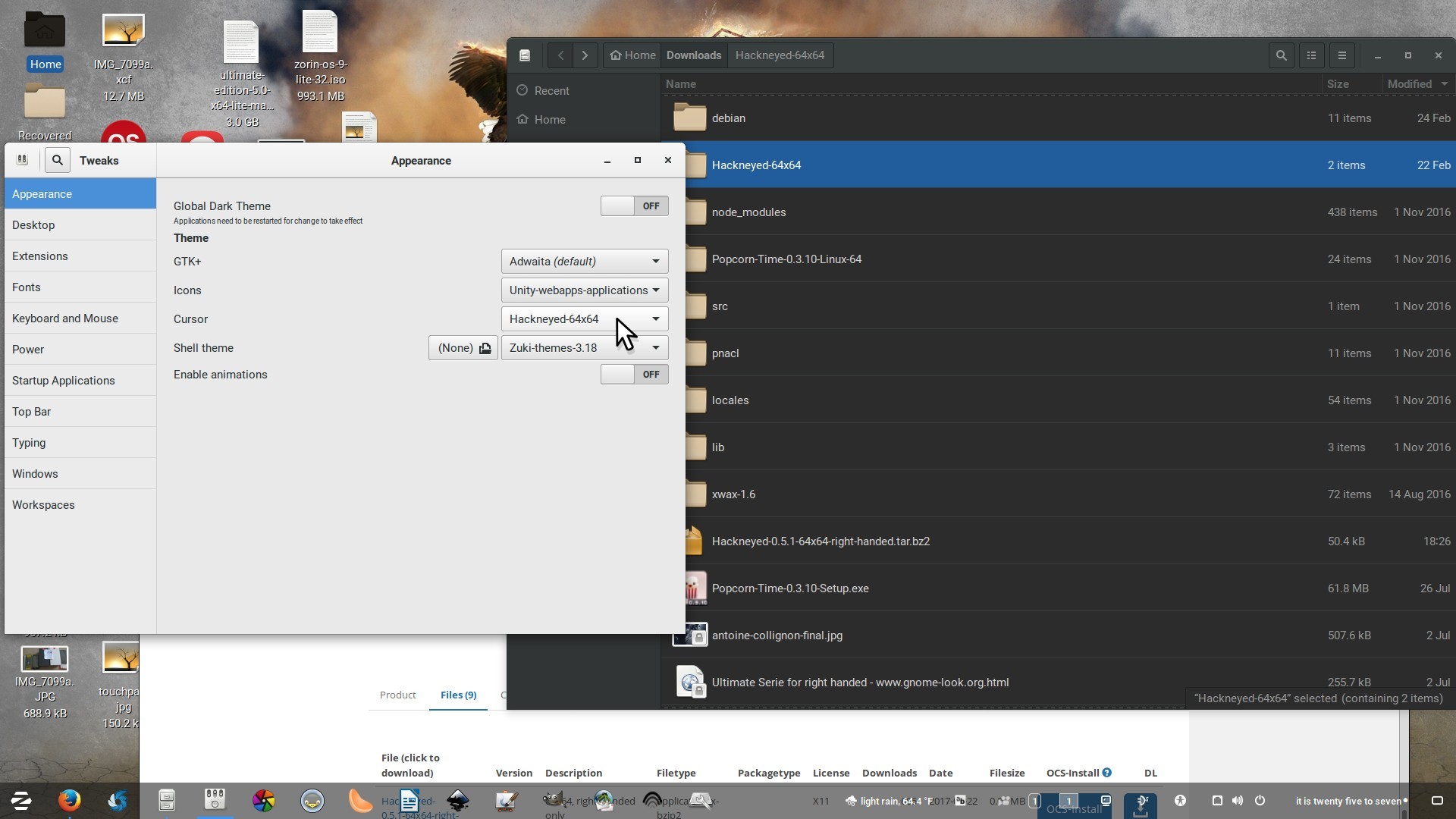 (that's all that's in the file). But it hasn't done it. Or rather, when the mouse is on the desktop and taskbar it dispalys the new cursor, but when it's in any window, it displays the default Zorin one. Any idea how to fix this, please?[Icon Theme]
