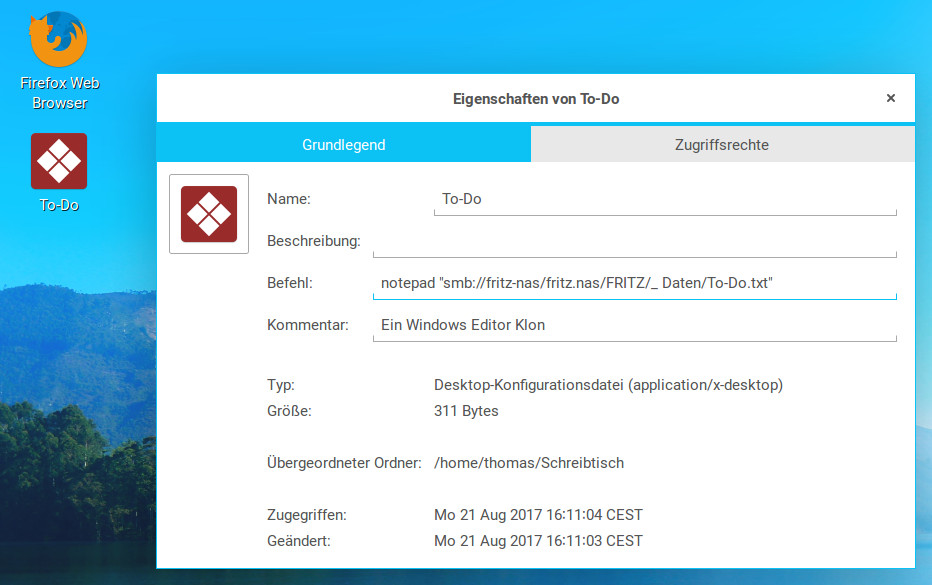 I want to make a shortcut-icon on the desktop. my file To-Do.txt on network-device.