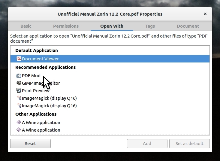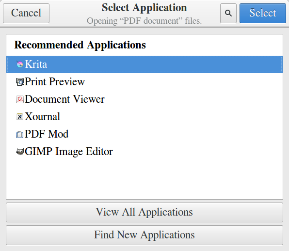 How do I set Krita to be my default application for opening .pdf files?