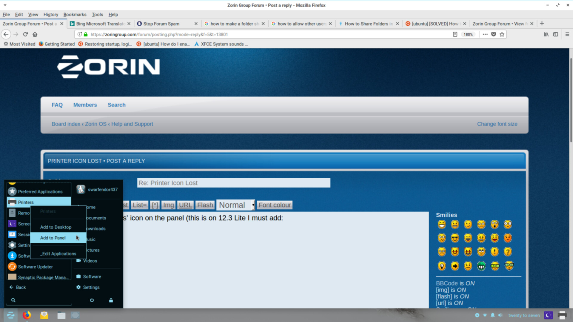 Swarfendor437 wrote:Try adding the application launcher, add quick launcher to the panel then add printers launcher?