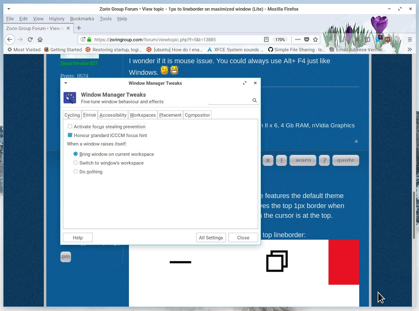 On Zorin OS Lite (Xfce) there is a 1px lineborder on the top while a window is maximized.