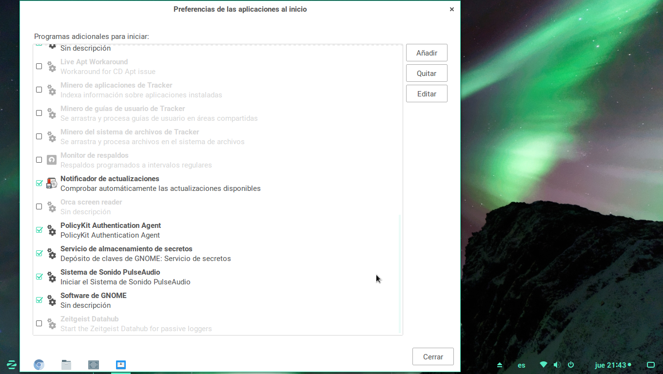 and this is the things I unchecked from the "starting applications" (have read before some post in this forum, specialy "Wolf" usser sugestions)