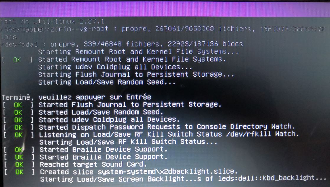 After the second startup, my computer started to boot but he remain with the screen freezed at the Zorin symbol.