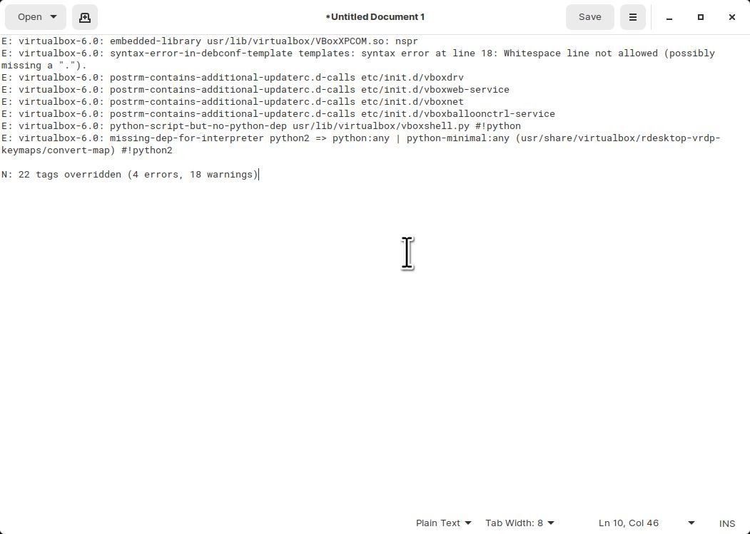 I'm pretty sure I had six running in alpha4 but now having issues in the current beta. I have only copied the error messages of the lintian output into a text editor as the output is too long to post.
