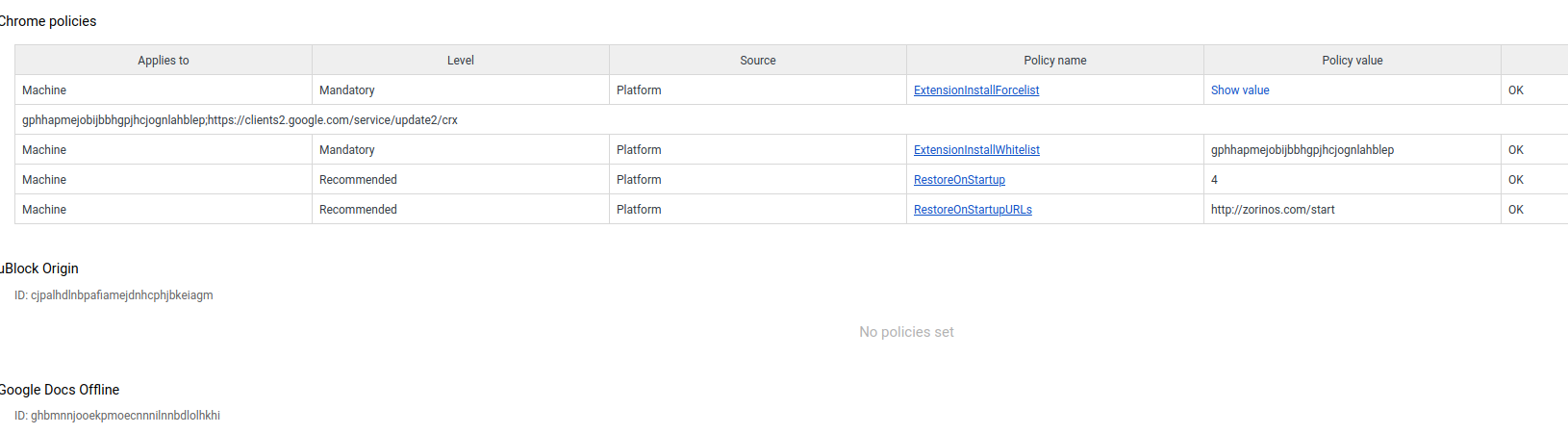 This is new/unexpected..see attached screen cap for the policies.