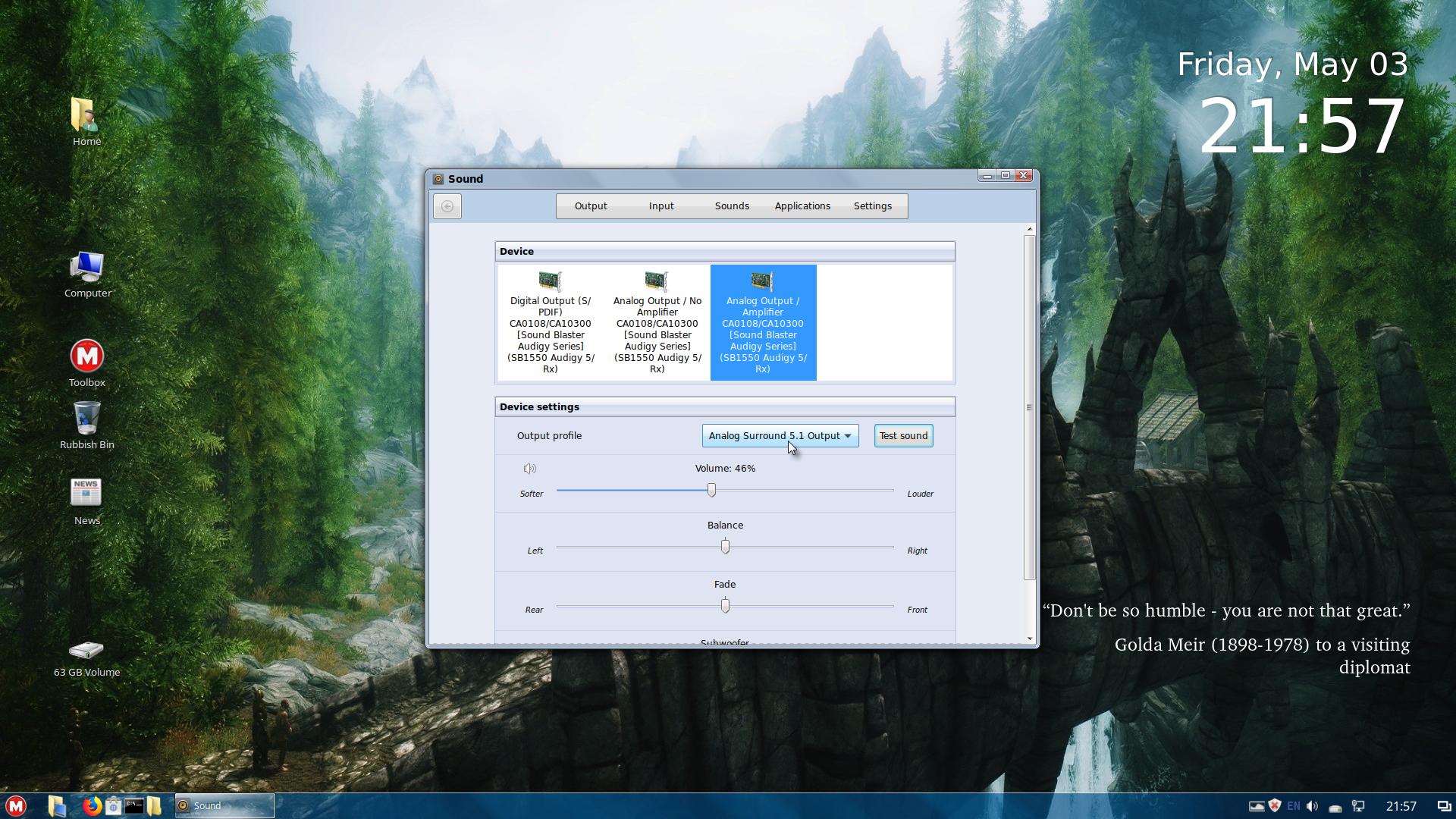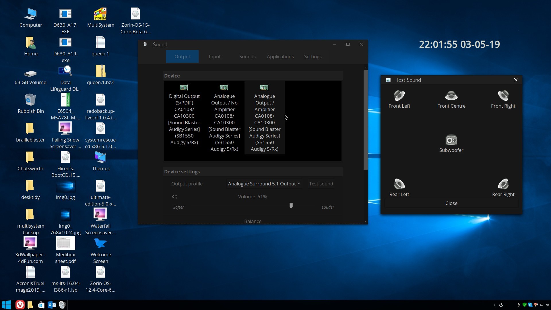 So now we have sound through the SoundBlaster Card in Zorin 15 Beta: