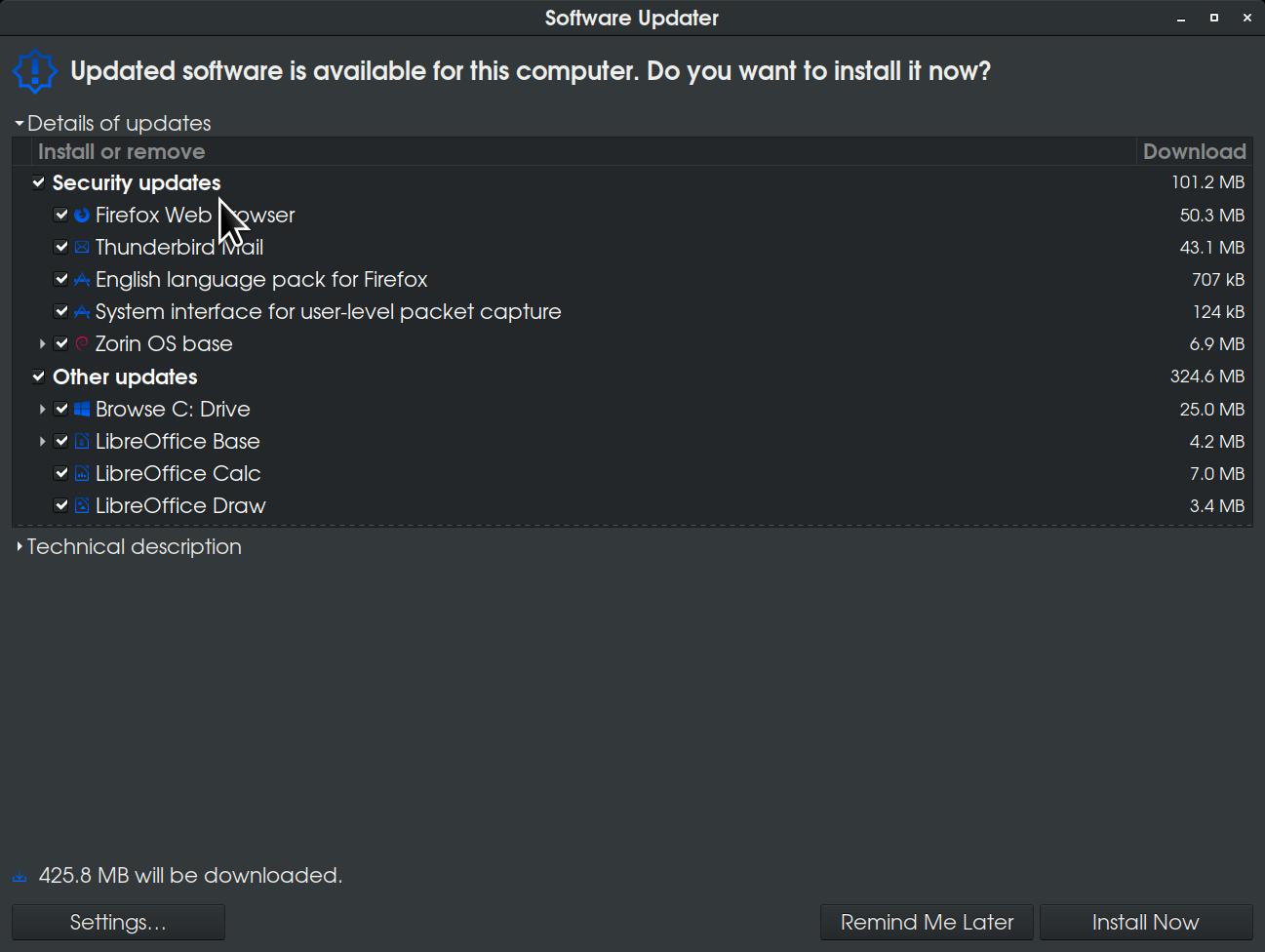 Only on ssd drive it doesnt assume the thicking box where i could select the several updates( security, recommended updates)