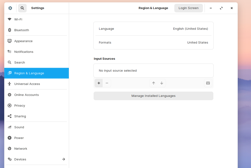 When I add an input source nothing will change. I only get the option to change (as in add or remove) input sources on the login screen.