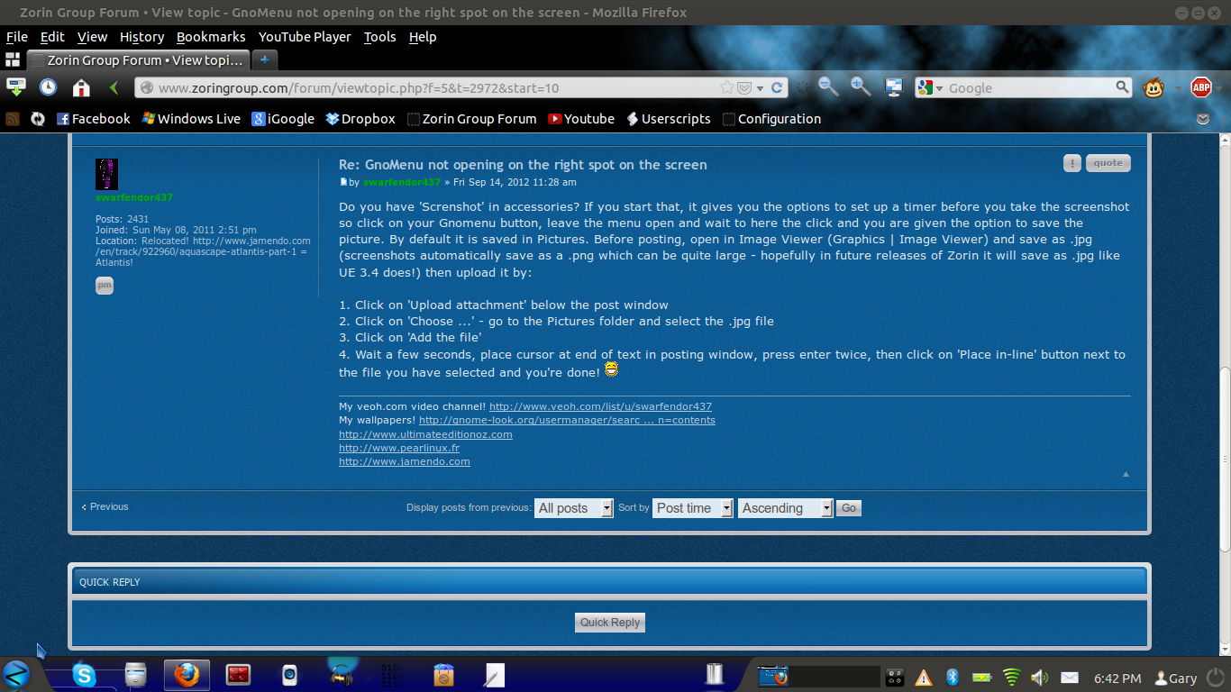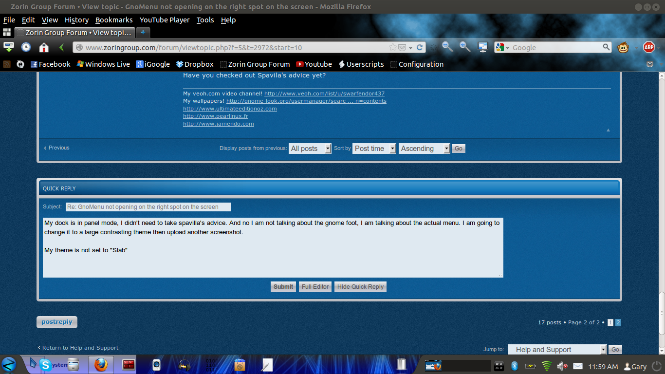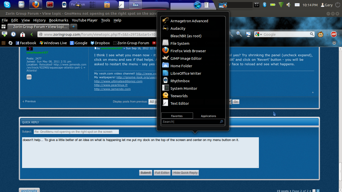 I think this problem explains it's self if I put a picture of it here... unfortunately I won't bother to find out how to screenshot gnomenu. So... I will try to display it in text.