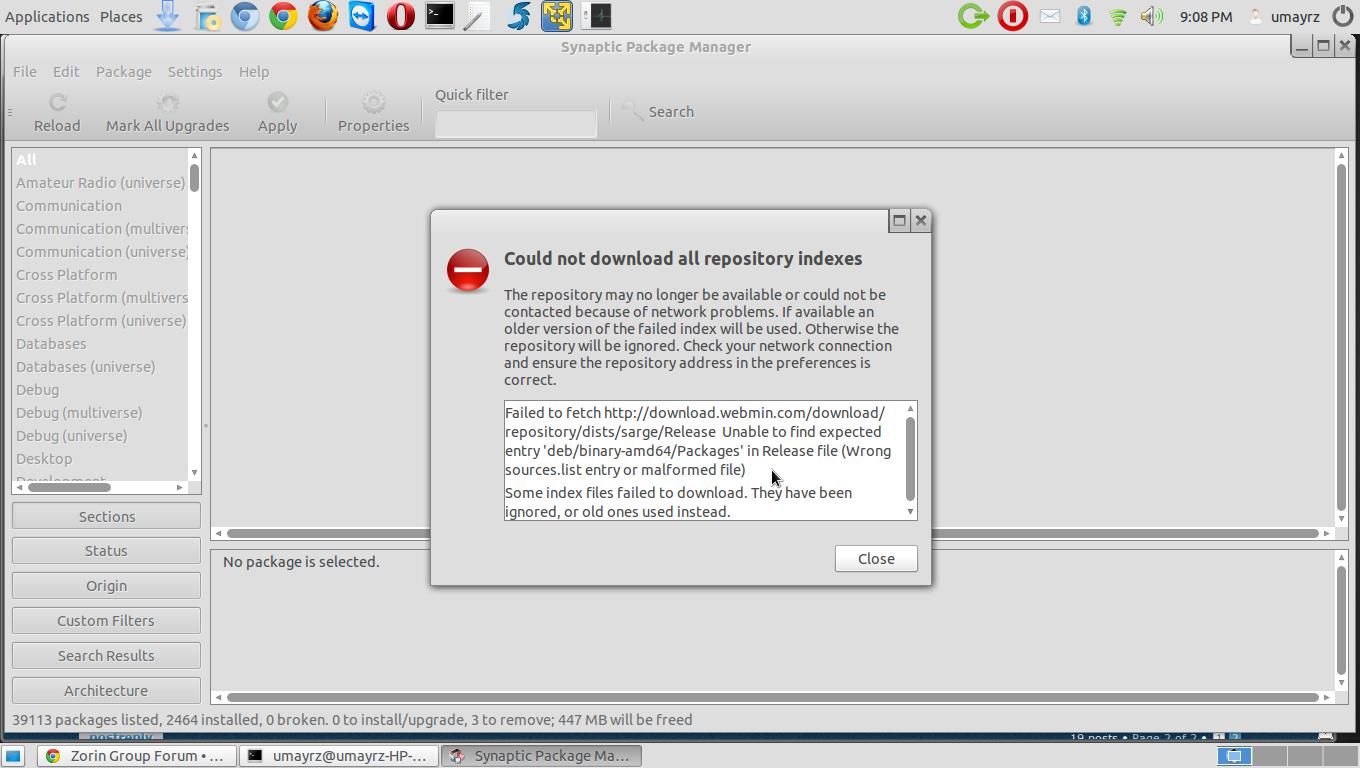 W: Failed to fetch http://download.webmin.com/download/repository/dists/sarge/Release Unable to find expected entry 'deb/binary-amd64/Packages' in Release file (Wrong sources.list entry or malformed file)