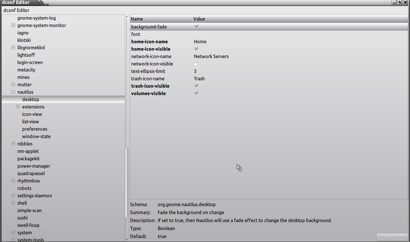 2. Then select 'Destkop' in left pane and slide to 'off' - Wolfman might know of a DConf tool way of removing!: