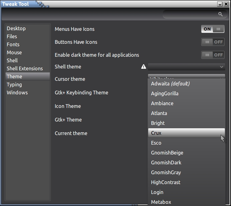 Open Tweak Tool > Theme > Current theme and select what you want there!!.