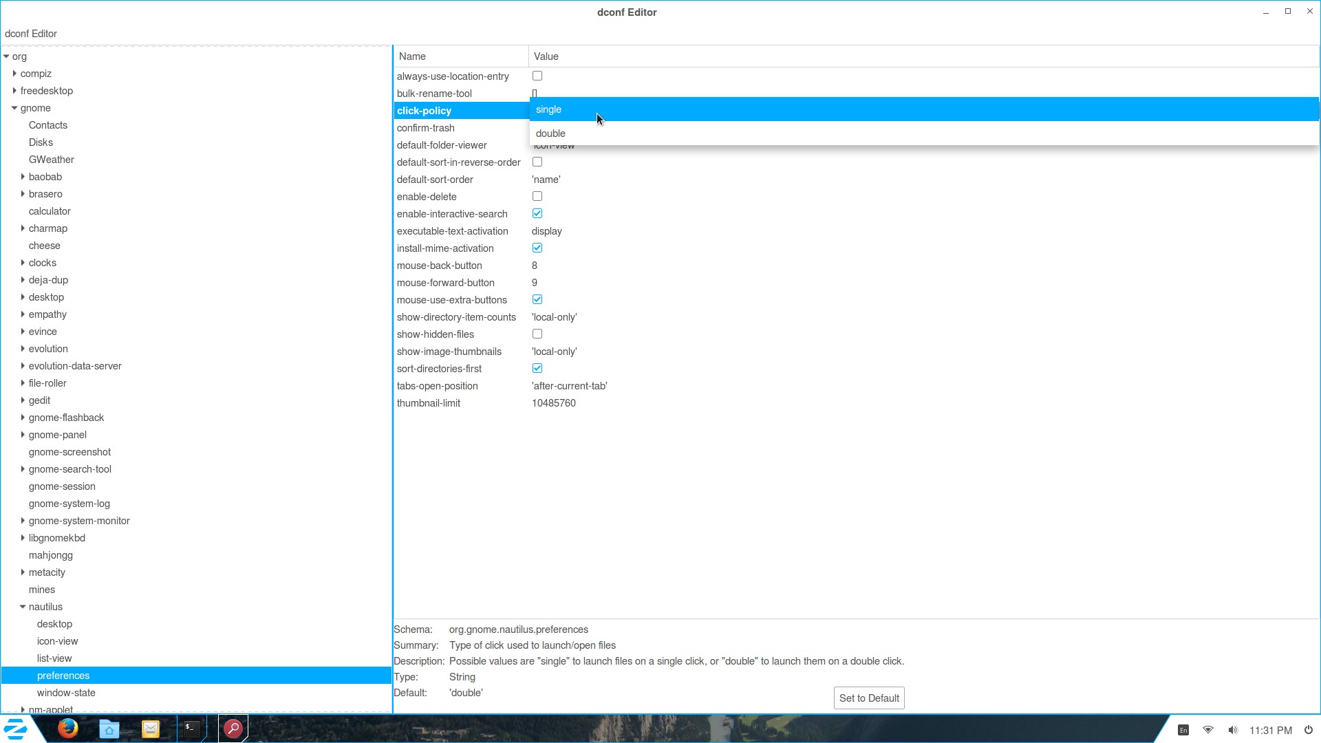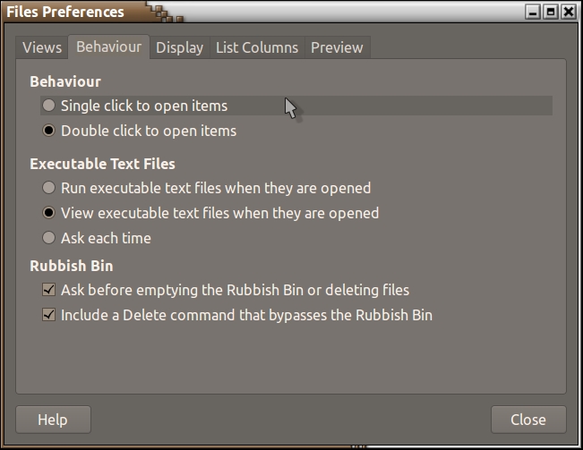 you can also do this via Nautilus (Home folder) by selecting: Preferences > Behaviour: