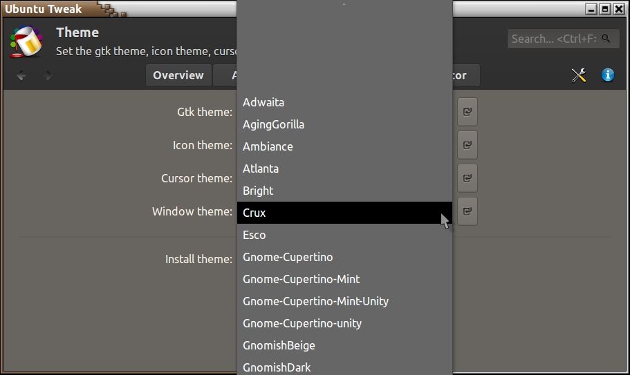 see the themes section of the post install guide and also about installing Ubuntu Tweak Tool: