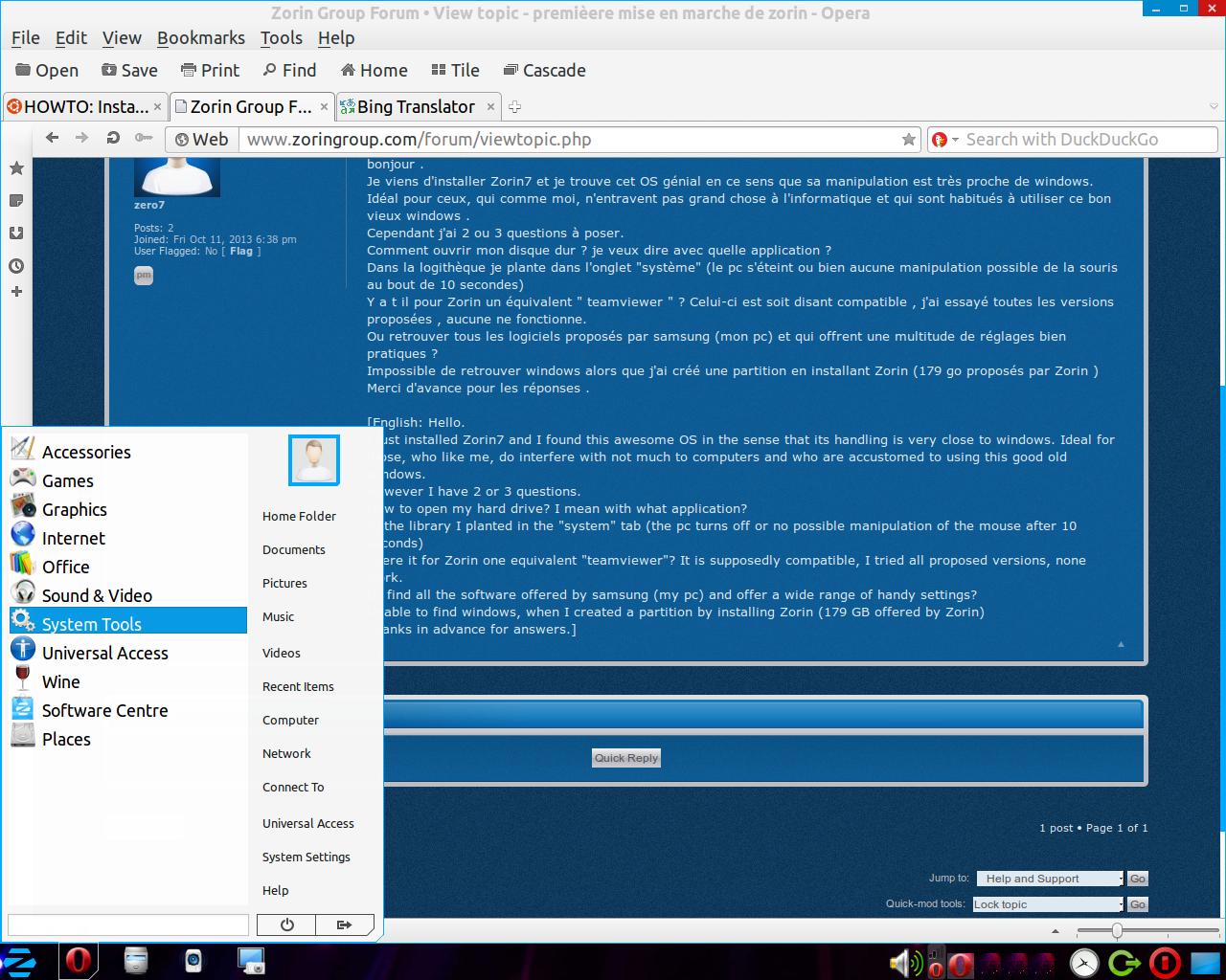Je viens d'installer Zorin7 et je trouve cet OS génial en ce sens que sa manipulation est très proche de windows. Idéal pour ceux, qui comme moi, n'entravent pas grand chose à l'informatique et qui sont habitués à utiliser ce bon vieux windows .