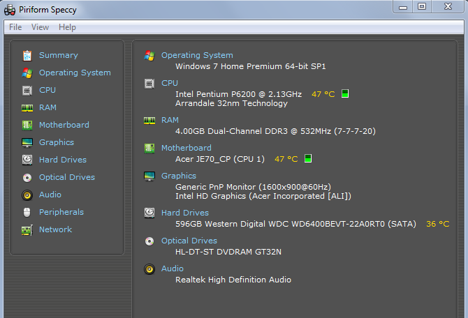 Here are my specs: