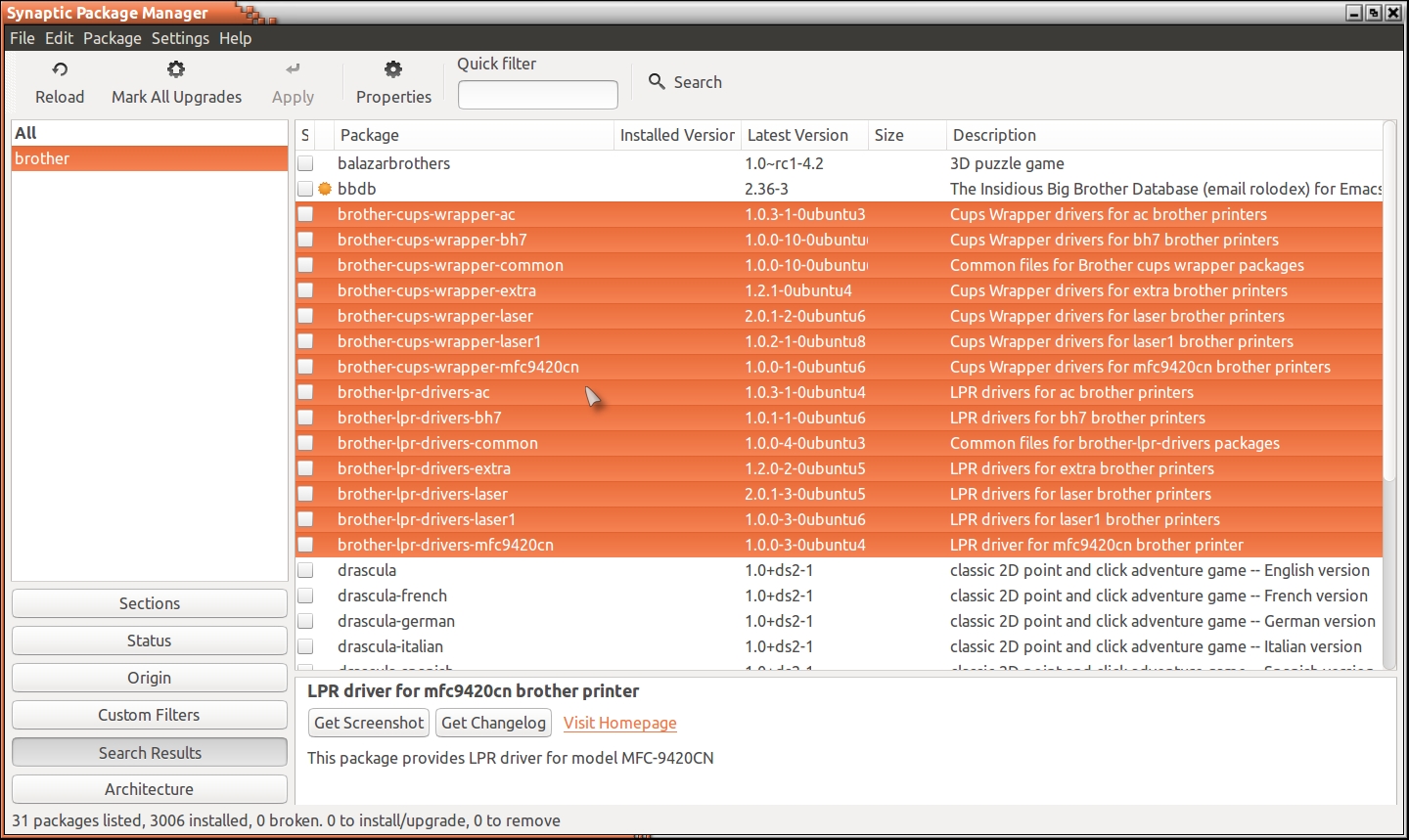 I am convinced that my drivers are properly installed for my Brother MFC8220 and the ppd file is specific to that printer.