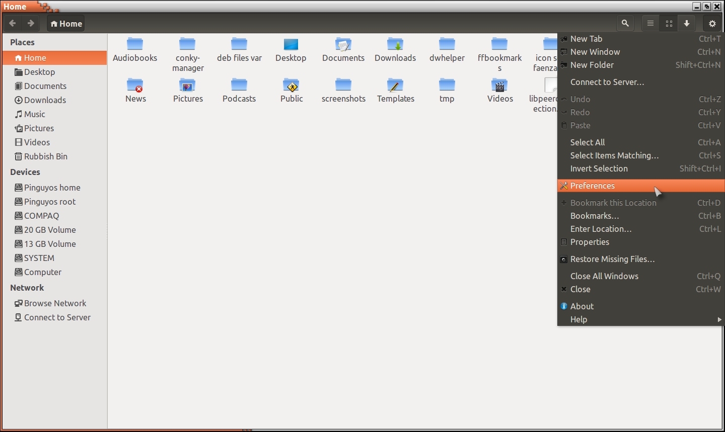 How do i get the menubar at the top of the filemanager application back?