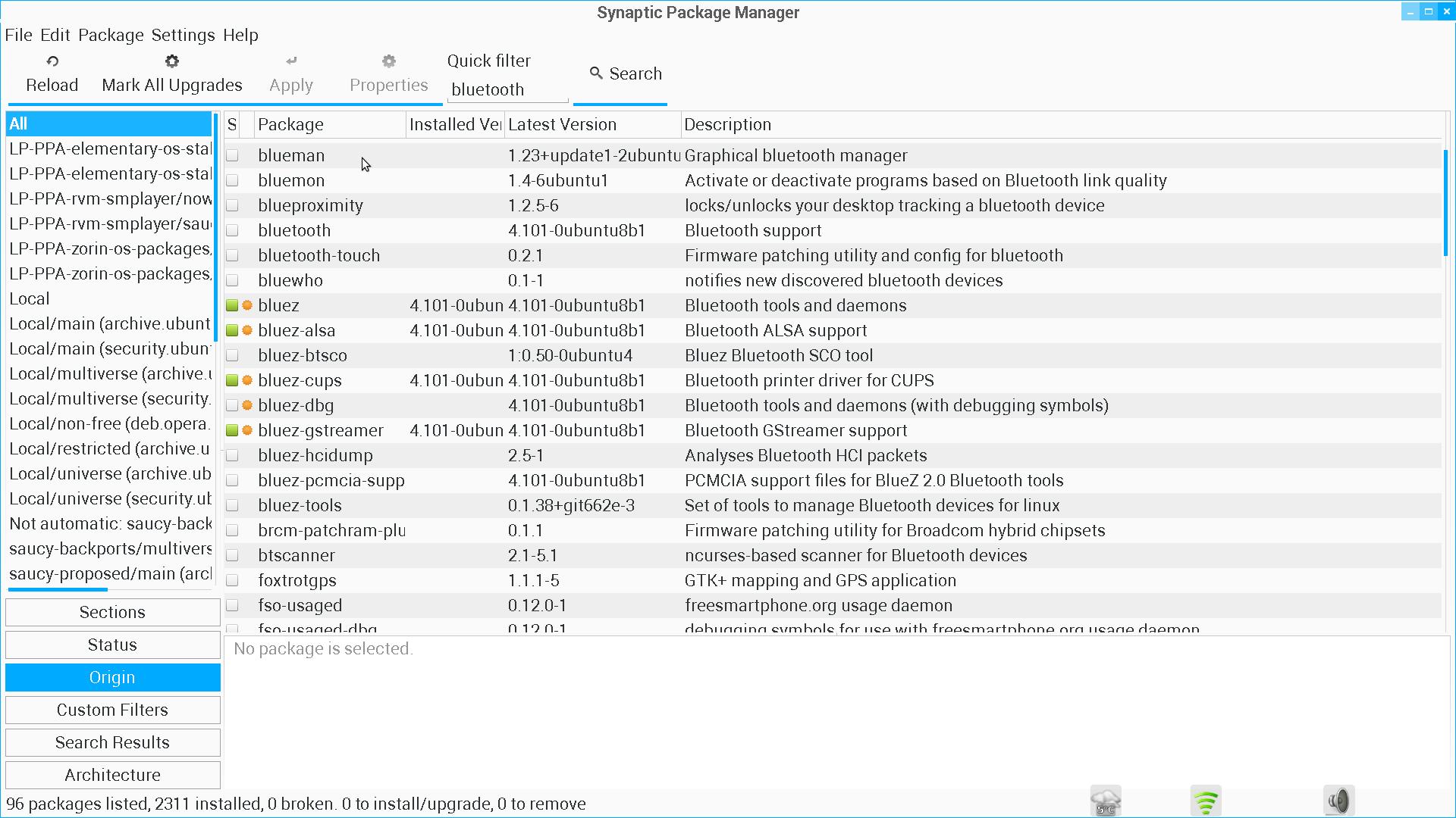 Hi, and sorry about the out-of-date link - I don't use bluetooth that much so bear with me. I opened Synaptic Package Manager (just enter 'synaptic' in the search bar) - you will need to provide your login password to escalate your privileges to 'root' to install any missing bluetooth packages - there are quite a few - take your time to look through the list - left-click on any item and a description appears in the bottom right-hand pane: