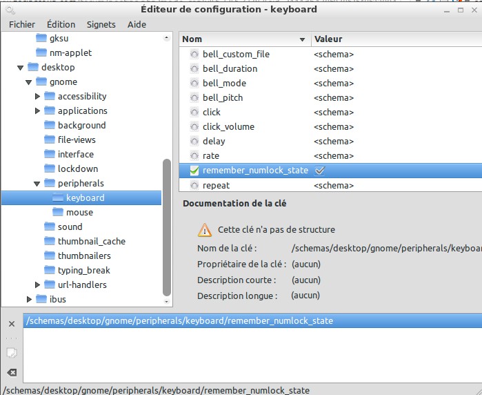 Also, you can see in the screenshot there is a problem with the numlock key lol, i deactivated it but I didn't know it would DELETE it !! So i remade it but OFC it says "this key has no structure" or something like that lol Btw I could change the value from "schema" to "true".