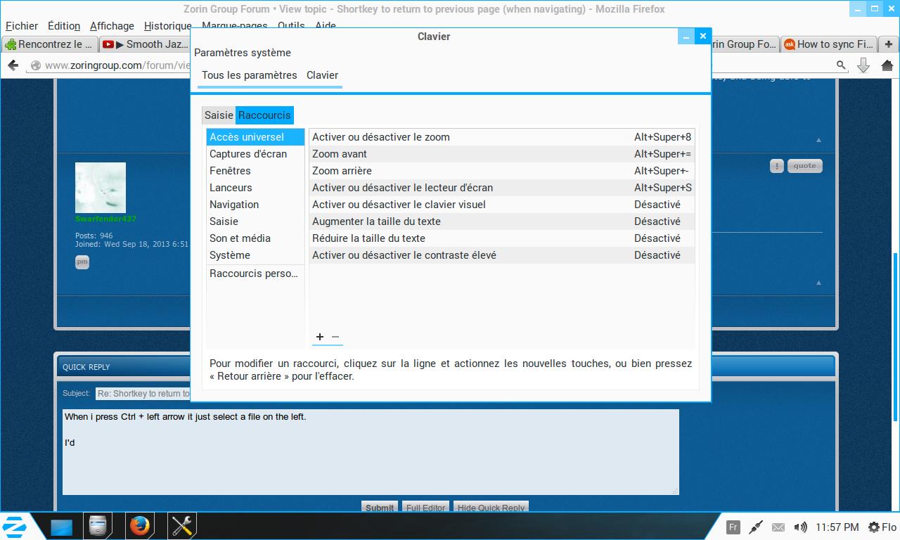 I checked the keyboard shortcuts, but I can't find how to go back to the previous page either in mozilla or in the file manager ("explorer).