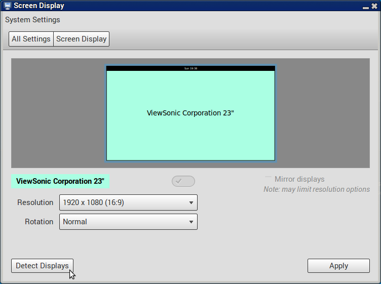 henro wrote:Sorry I didn't get back to you sooner and thanks for your interest in helping. I have my system completely up to date. In fact, I just upgraded to 14.04. I've tried connecting the monitor in two different ways. First, I connected it before starting. The spash screen showed up on both the netbook and the external monitor, but when the computer was fully booted, it was frozen. I had to use the power button to shut it down. And so I tried starting the computer disconnected from the monitor. I opened the Monitors control panel, then connected the monitor. The control panel window shifted almost completely off the screen of the netbook, the computer froze, and the desktop pattern fractured into four and flickered!
