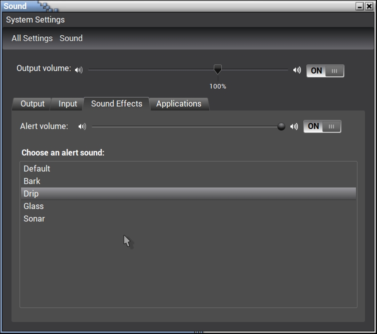 System Settings > Hardware > Sound > Sound effects: