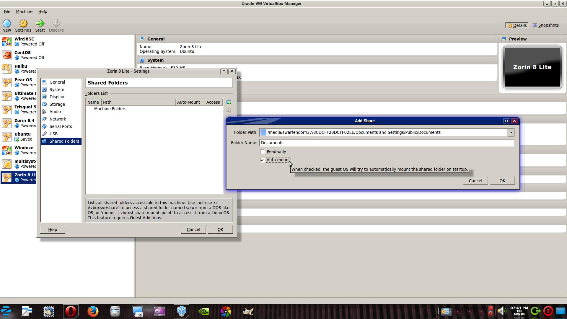 I want to share folders between the host/guest. Is this possible with Zorin Linux Lite? I've been Googling the heck out of this question with not much luck on this. I seem to get either one bad command or another. If you know how to do this, please explain. Thank you.