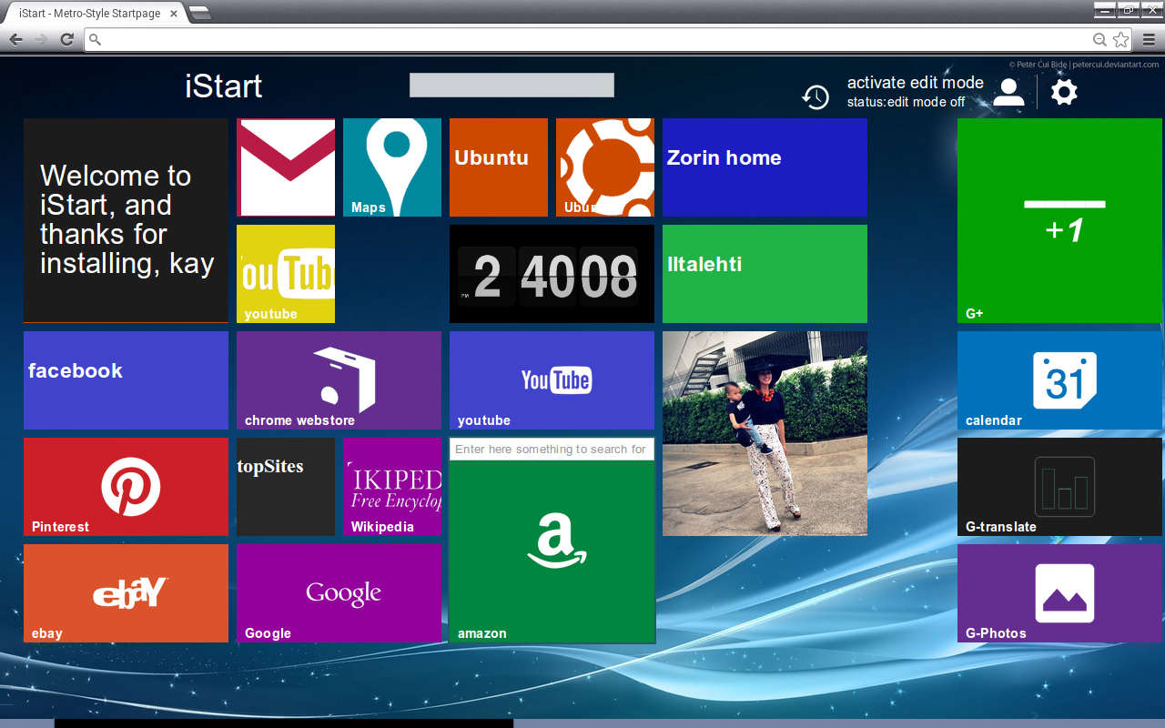 I want that the start up goes automatically to that "iStart page" due to I have 2 desktops in use in my laptop, one for quick start web pages and applications from Chrome using iStart and the other for starting other Zorin applications from "zorin menu", from "desktop icons" or from "Filemanager/Applications menu". This setup using Zorin 8 Lite, which boots quickly from full install USBdrive (16 Gb SanDisk Cruzer Fit) would be the fastest way to start whatsoever application after start in a HP 530 laptop.