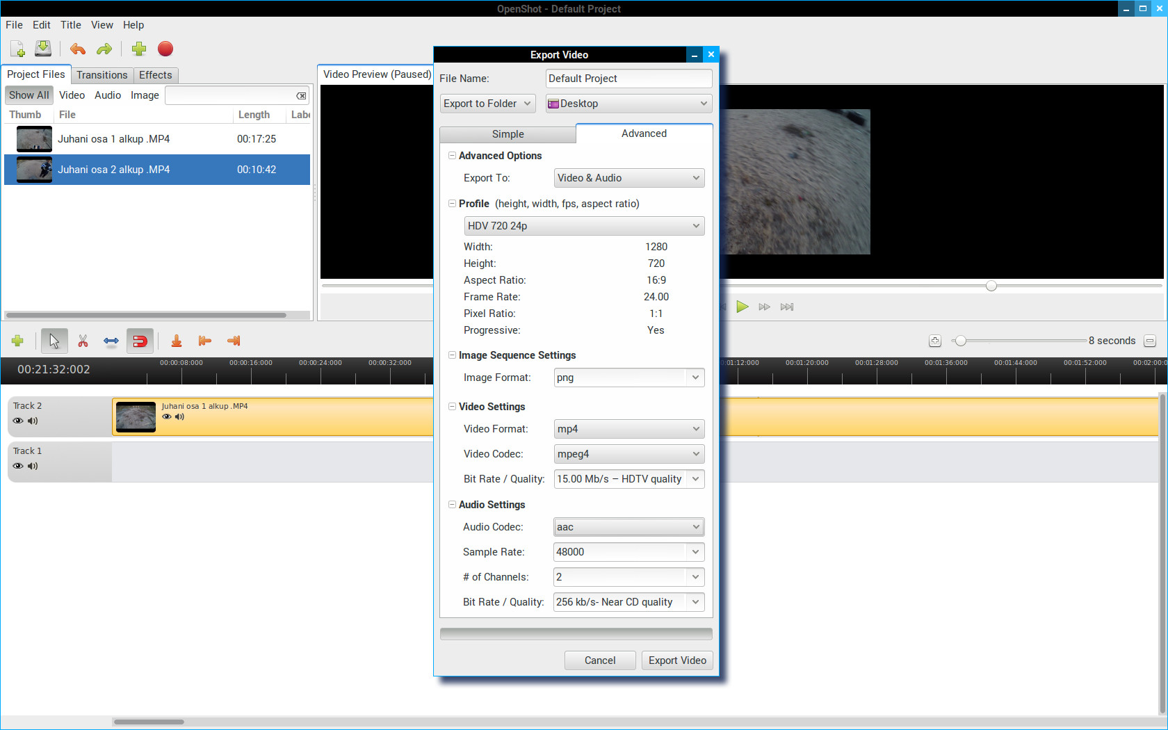 AVI 25 fps resolution 1440 x 1080 with anamorphig 16:9 aspect ratio, (near FullHD quality, 75% of FullHD pixels)