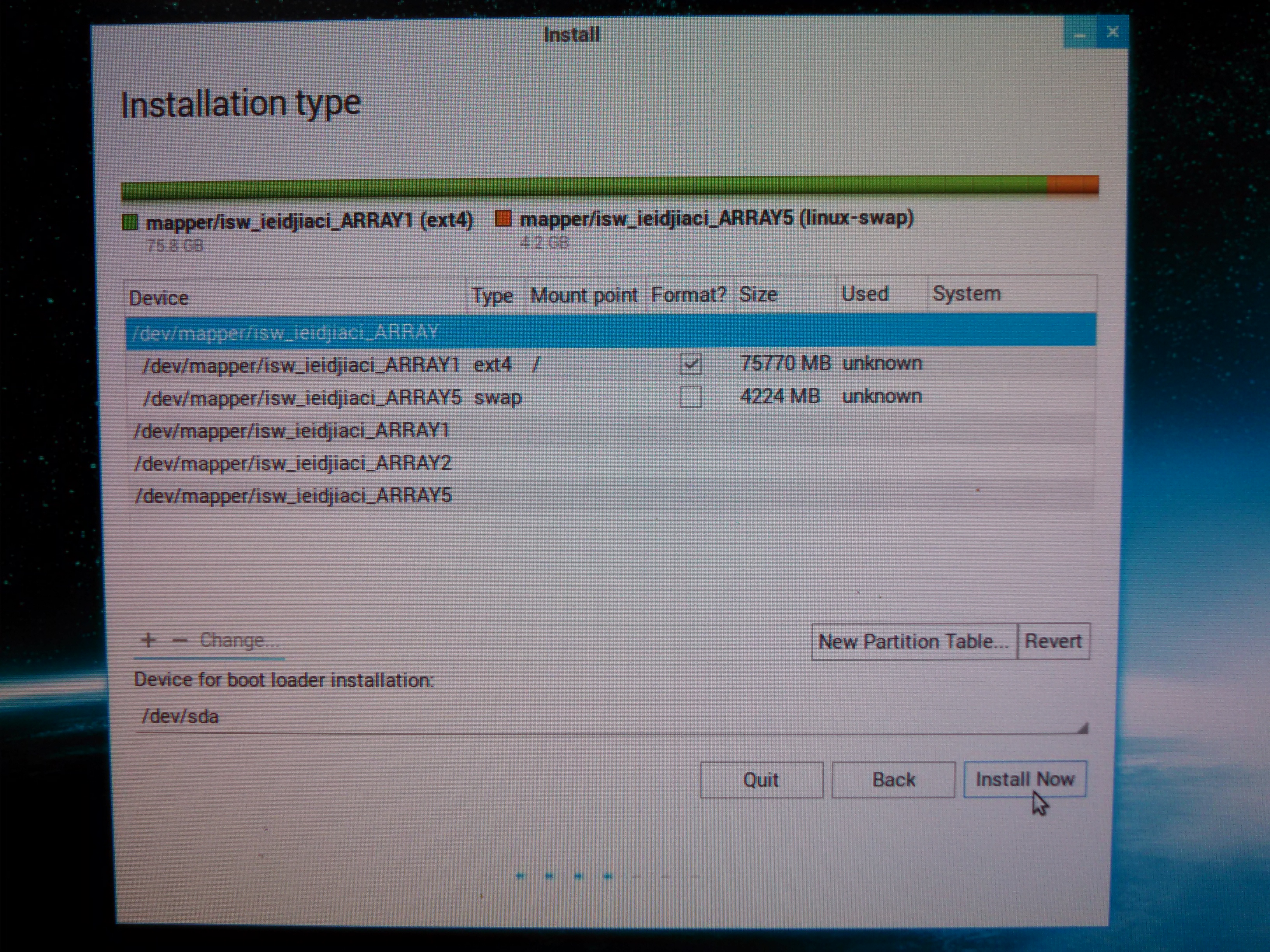 - 1. I take the default "Replace Windows 7 with Zorin" selection on the "Installation type" dialog (leaving encryption and LVM unchecked) and click the "Install Now" button.