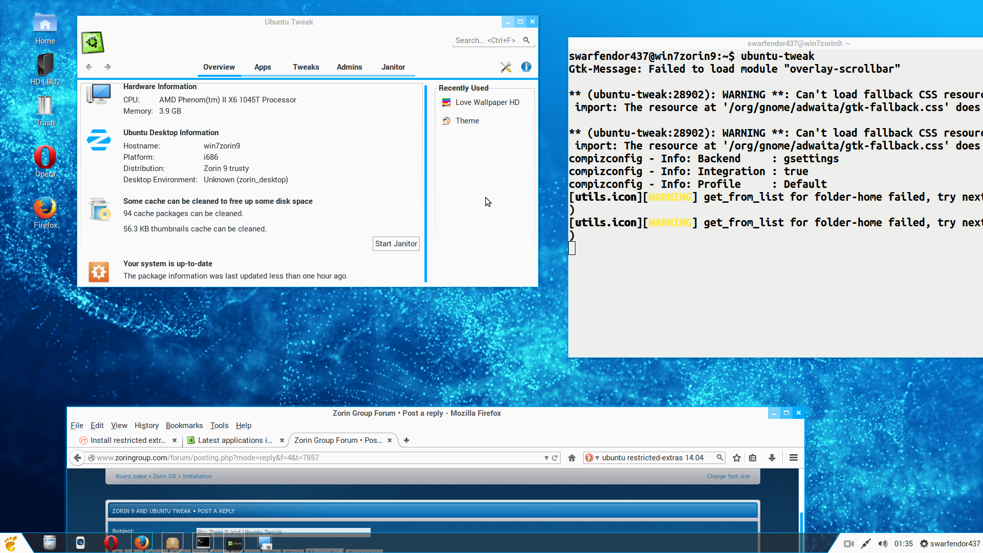 After the installation I wanted to change my themes and do some other tweaks, so I decided to install the last version of Ubuntu Tweak (I tried both through the terminal and through the .deb package I downloaded from its official website). I did install it. However, I didn't manage to find it nor in the systems setting nor in the app menu. It simply wasn't there. I also tried to install unsettings through the terminal and got and error saying that the package could not be located.