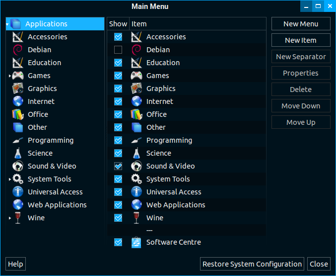 Is there a way to do it, to add categories in addition to the ones that are on there? For instance, I'd like to add startup, which is in the Xubuntu system settings.
