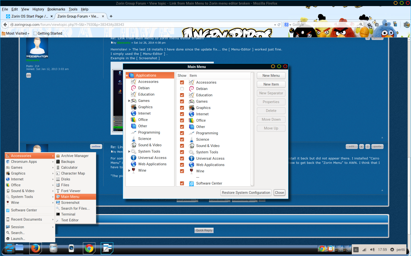 I removed "alacarte" and installed "Zorin menu editor" but it does not start from "Zorin Menu" when selecting there "Main Menu". Can be started only from search window typing "Zorin menu editor" there. then it lists "Main Menu" there and can be started. How to fix that ?