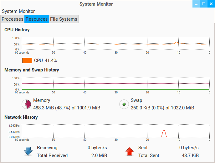 So I restart and start up System Monitor again, this time I notice that, even though idle, the CPU is still running at approximately 50%. So to compare, I quit and launch my Mint 16 VM but it's idle state is around 5%. Tried the same experiement using my Z8 VM...same as Z9.