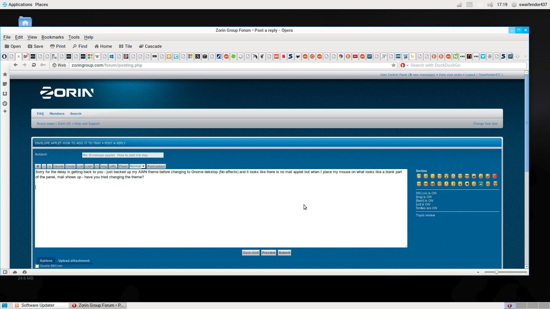 Hello, I used to have a small envelope icon on my tray to launch Thuderbird [it also had options for compose message and one or two other items]. For some reason or other it has vanished/been removed. I can still launch T-bird using its stamp like icon moved to the tray but I like the envelope one better. I haven't been able to restore it. Any sugestions on how to fix this?